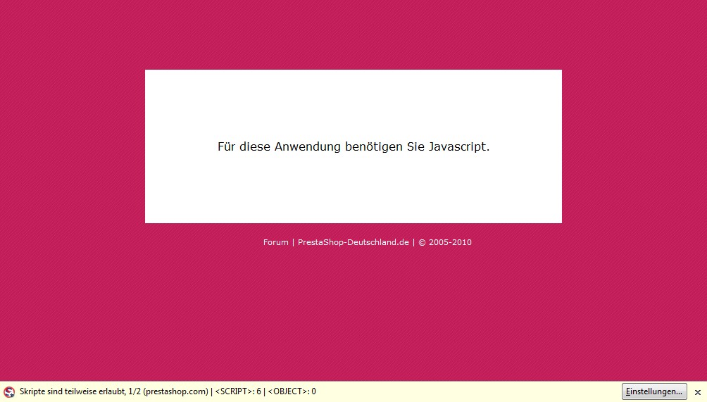 Lösung: Vermutlich ist JavaScript im Browser deaktiviert. Einfach aktivieren oder wie in diesem Fall bei installiertem Firefox-Addon von NoScript, grundsätzlich JavaScript für die Domain zulassen.