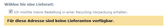 Meldung: im PrestaShop Checkout-Prozess / Bestellvorgang; Für diese Adresse sind keine Lieferanten verfügbar.
